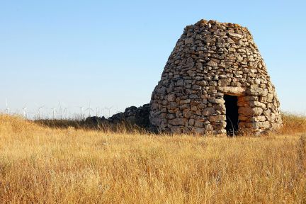Y carretera adelante llego hasta la Atalaya de nombre, del Cañavate de apellido, y me recibe Sancho Panza a la zurda del camino, pues diestro nunca fue el escudero, aunque de corazón ancho como su vientre, el Cubo del camino, en el que moraron los pastores de antaño huyendo del frío y esquivando la calor.