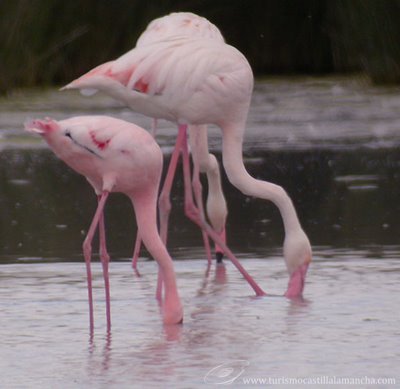 y ganada la batalla, salen a nuestro encuentro a felicitar a Caballero y Escudero, los pájaros rosas de la Laguna de Manjavacas, que sin ser Ínsula, es un Paraíso Terrenal.