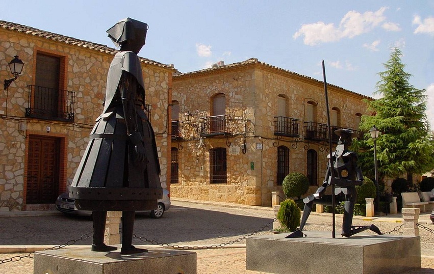 Con el estómago lleno de un buen desayuno con pan de la tierra, del de tahona, bien untado en aceite y tomate de la huerta, dos huevos con chorizo y un buen trago de vino con azúcar, no más que la benemérita multa mucho y quita puntos, subo en mi Ibiza blanco, como mi antiguo trajecito de lana, y salgo de mi pueblo por la carretera de la Atalaya, que dudo mucho que Quijote y Sancho anduvieran sobre rocín y jumento por una autovía, todavía gratuita, pero autovía al fin y al cabo.