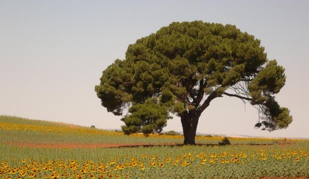 Mi Quijote particular, alto, esbelto y flaco, hidalgo sin lanza pero con armadura de piñas piñoneras y dos águilas reales por sombrero, me dice hasta luego desde lo alto del cerro, sin molino pero con aspas por ramas. Y con mi rocín blanco, de cuatro ruedas y panza de gasolina, salgo de Cañada…