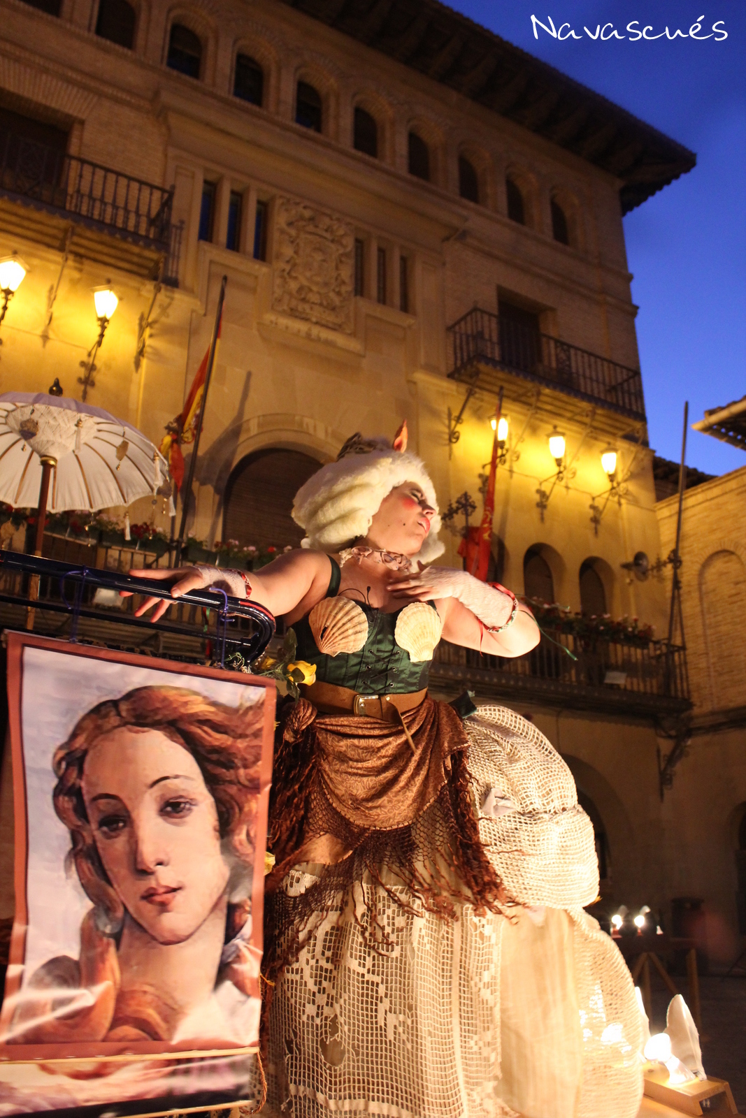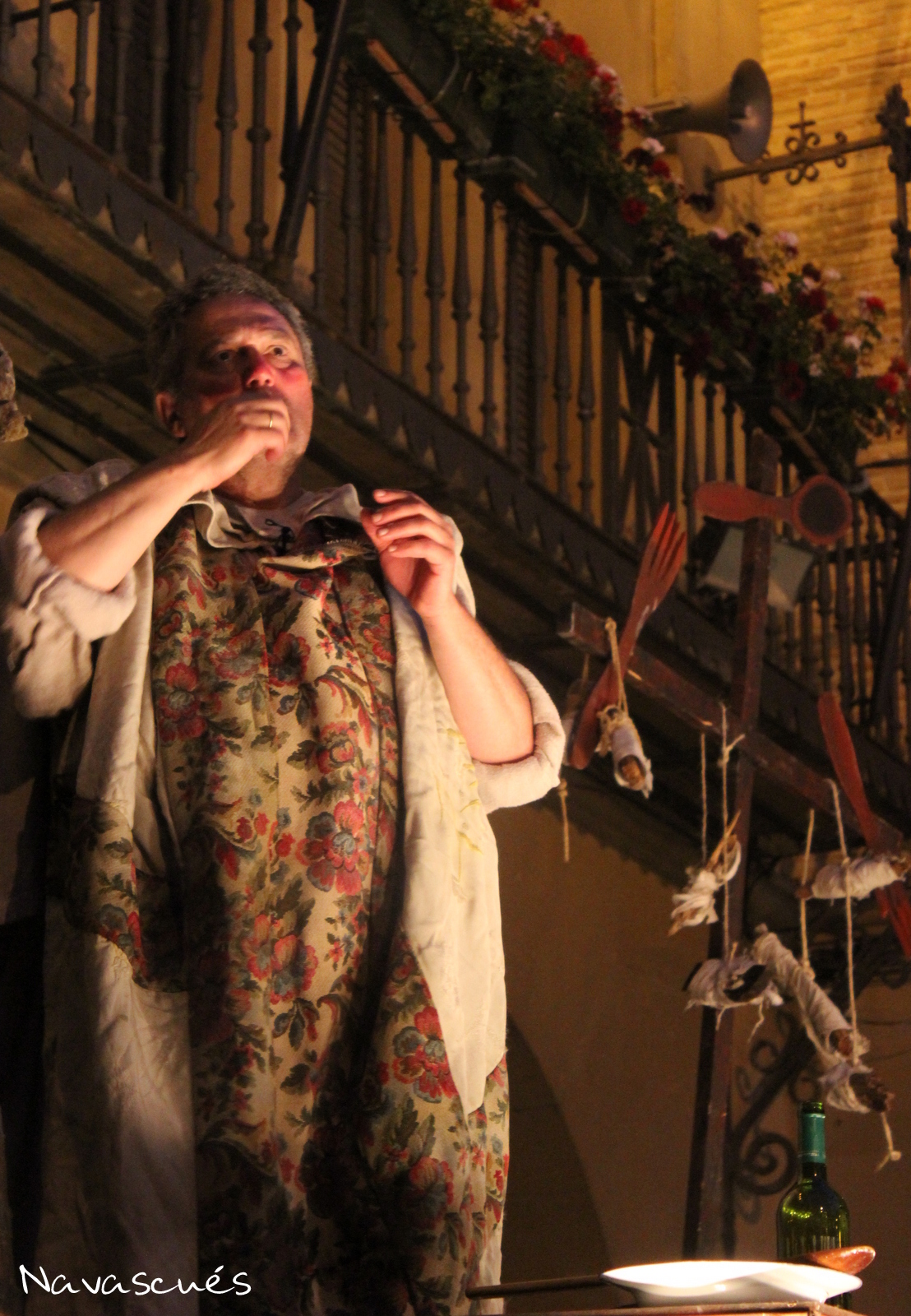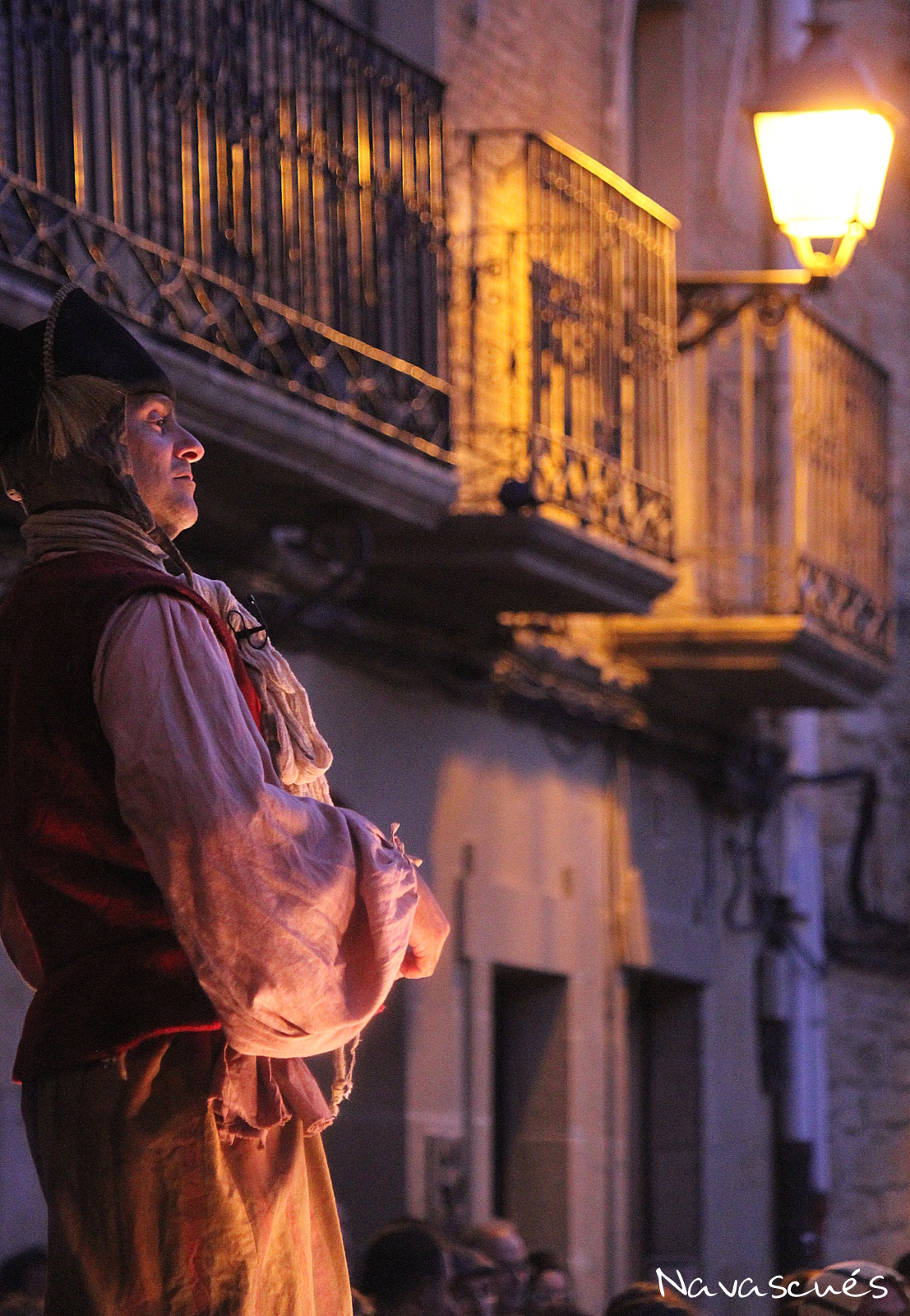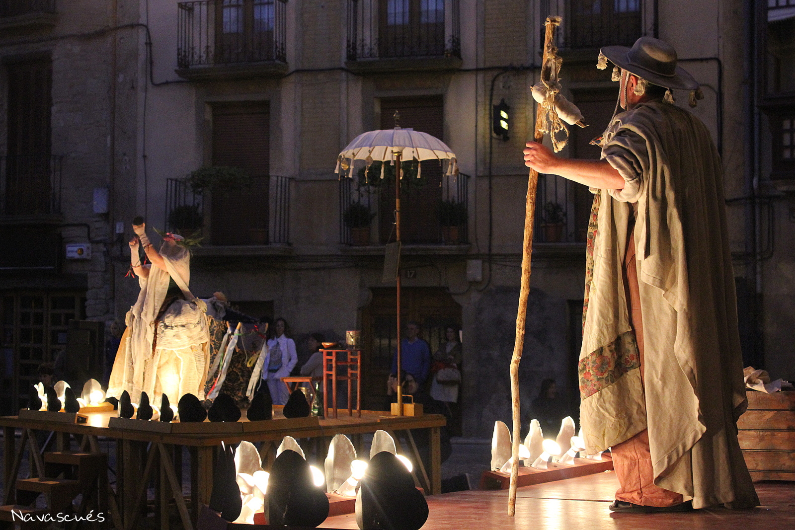 Al acabar el espectáculo de La Cava, dio comienzo en la plaza Carlos III el segundo de los actos programados para ese día: Camino del Paraíso (Guirigai Teatro), una representación dinámica y callejera protagonizada por tres individuos: un fraile mendicante, un vivaracho vendehúmos y una alegre cortesana. Todos ellos, cada uno a su manera, ofreciendo su visión del mundo y proponiendo el método definitivo para alcanzar la gloria que todos persiguen. Se trata de un texto vivísimo y locuaz, con clara influencia de los grandes autores españoles del XVI, en el que los tres personajes, a la manera clásica, desparraman ideas y alumbran jocosas chanzas para desprestigiar el vecino y prestigiarse así mismos.