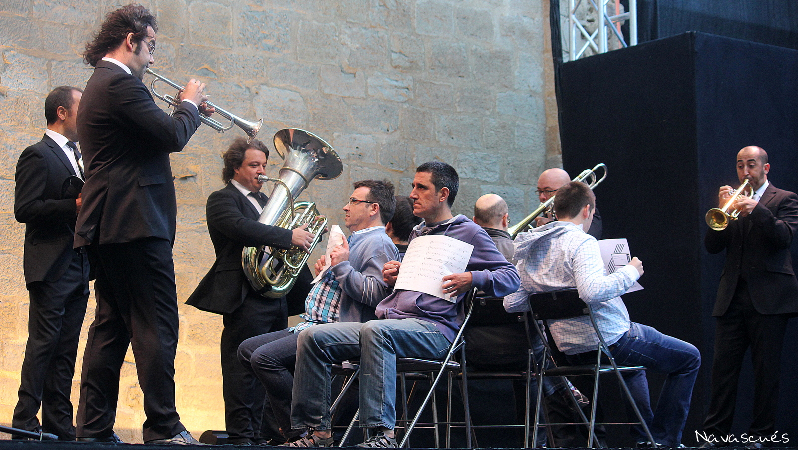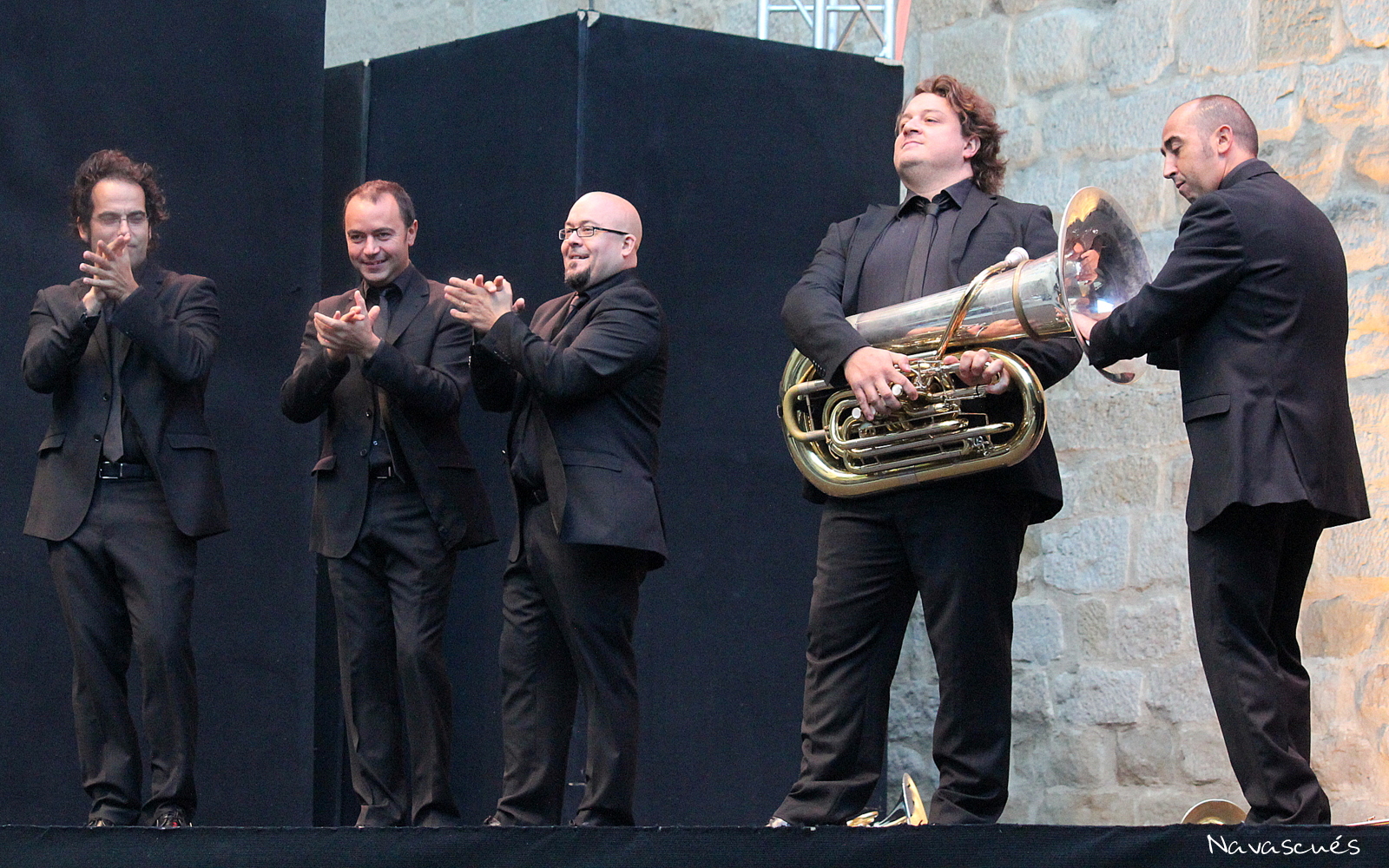 Los valencianos Spanish Brass Luur Metalls fueron los encargados de inaugurar el festival. Este quinteto de viento de metales, con una trayectoria profesional de más de veinte años actuando por todo el mundo, recaló en el escenario para desplegar, durante algo más de hora y media, una docena de piezas entre las que destacaron la siempre genial Tocata y Fuga en Re menor de J.S. Bach, Un po´di Fellini de Nino Rota (afamado compositor de bandas sonoras de cine), la pulcra interpretación de Andaluza de Enrique Granados, o Handful of Keys, de Fats Waller, con la que cerraron el programa oficial. Su puesta en escena es sencilla, pues no necesitan más que un vestuario unifmormado (traje negro de corte italiano) un especial desparpajo para introducir cada pieza con mucho sentido del humor y una pizca de ironía para manifestar que la música, para ellos, es el remedio para combatir los malos tiempos que vivimos.